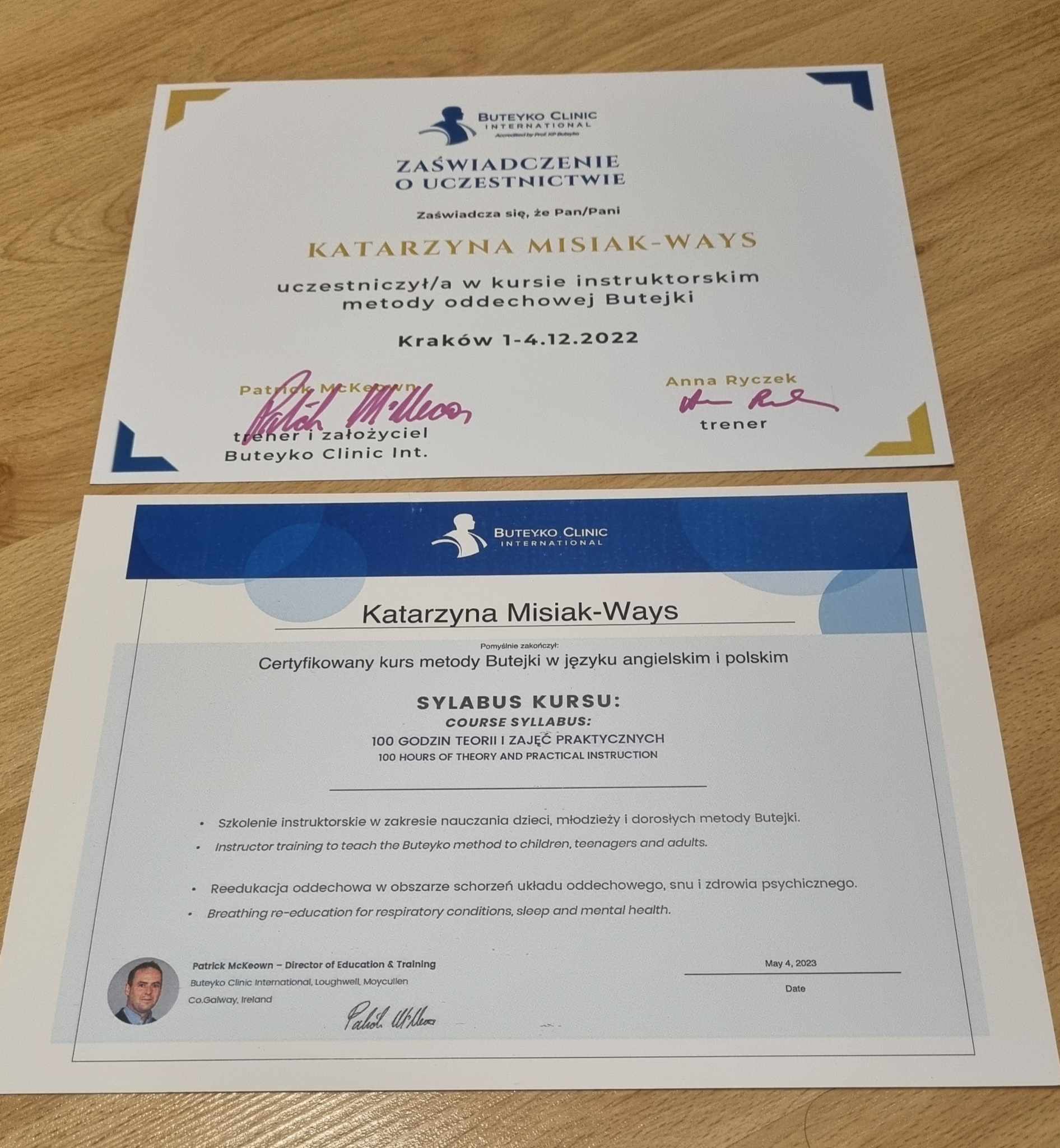Jeśli chcesz pracować sam z oddechem, zacznij od podstaw, znajdź odpowiednie szkolenia, kursy, po których będziesz mógł/mogła pracować nad sobą lub nad kimś i zdobywać doświadczenie oraz wykorzystywać zdobytą wiedzę. To pierwsza możliwa droga pracy z oddechem, dość długa, ale rozwojowa i być może nawet zawodowa. Przez taką drogę przeprowadzili mnie Patrick McKeown wraz z Anią Ryczek – fantastyczni ludzie i instruktorzy metody Butejki z ogromnym doświadczeniem i obszerną wiedzą – na kursie instruktorskim metody Butejki.